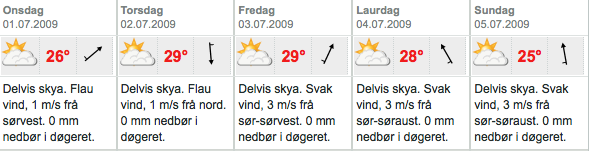 Ser ut til at det blir tidenes varmeste festival, hvis man skal tro på langtidsvarselet. Husk høy solfaktor!
