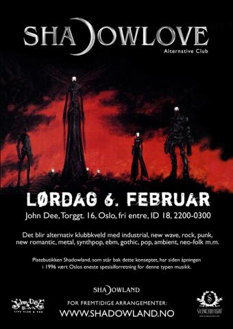 Det blir alternativ klubbkveld med industrial, new wave, rock, punk, new romantic, metal, synthpop, EBM, gothic, pop, ambient, neo-folk m.m. DJs for kvelden er steFAN (Shadowland) og Baetylos (Gotham Nights) Butikken Shadowland, som står bak dette konseptet, har siden åpningen i 1996 vært Oslos eneste spesialforretning for denne typen musikk. Lørdag 6. februar 2010 | 7